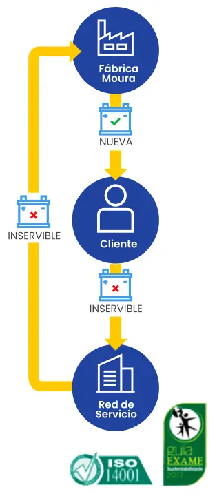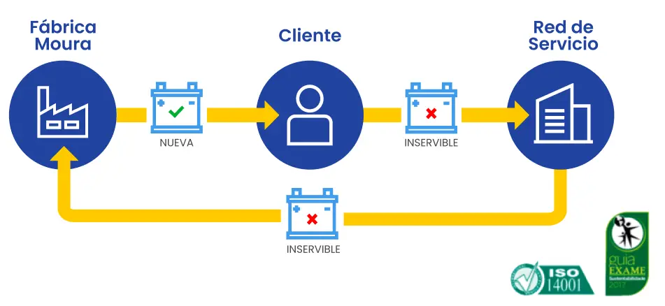 El programa visa garantizar la sostenibilidad a través de la gestión ambiental en todos los procesos y ámbitos de Moura. Por cada batería nueva vendida, se debe recoger una vieja.